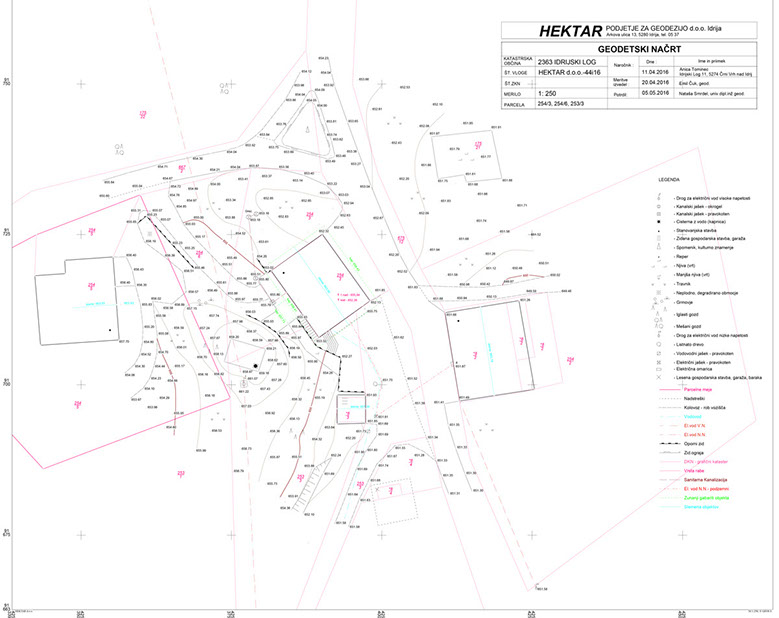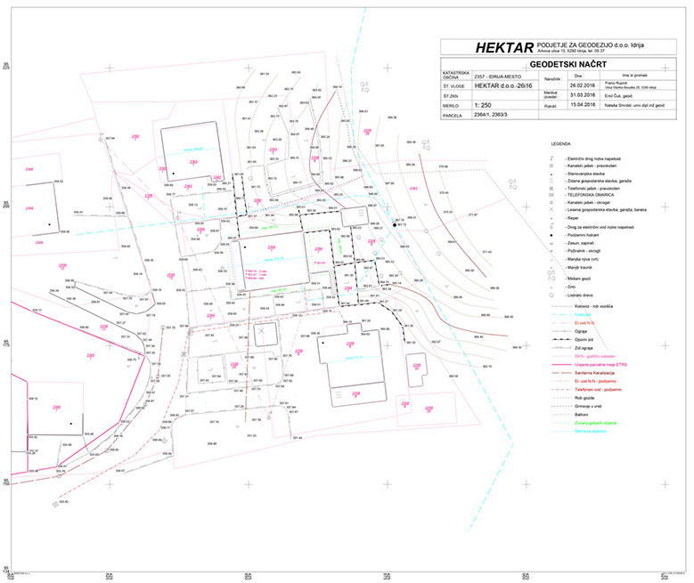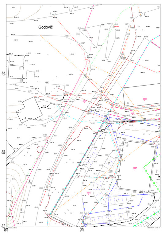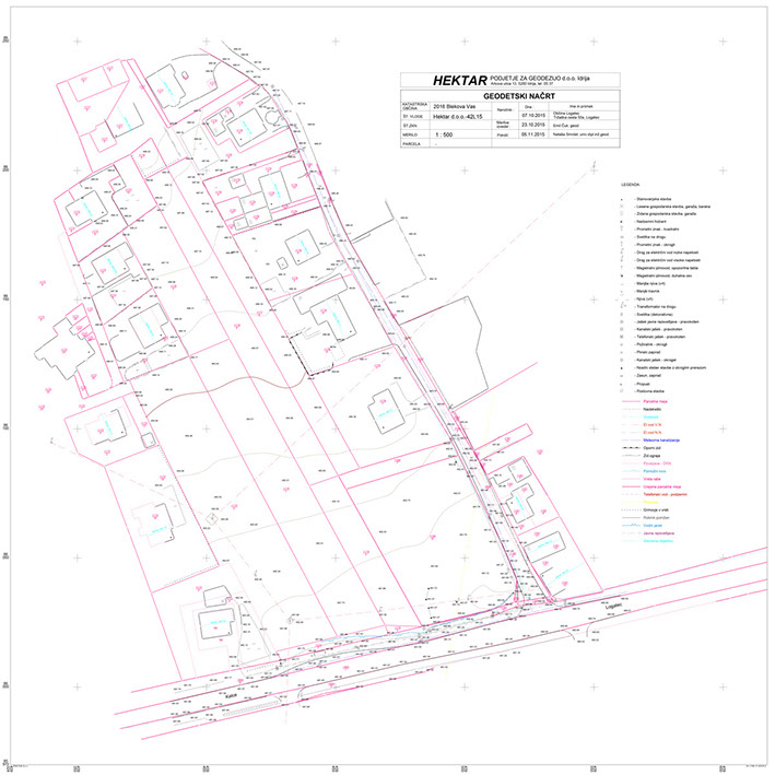 • izmere vodovodnih, električnih, telefonskih, plinskih in kanalizacijskih omrežij,